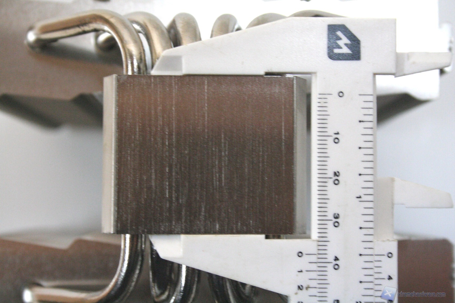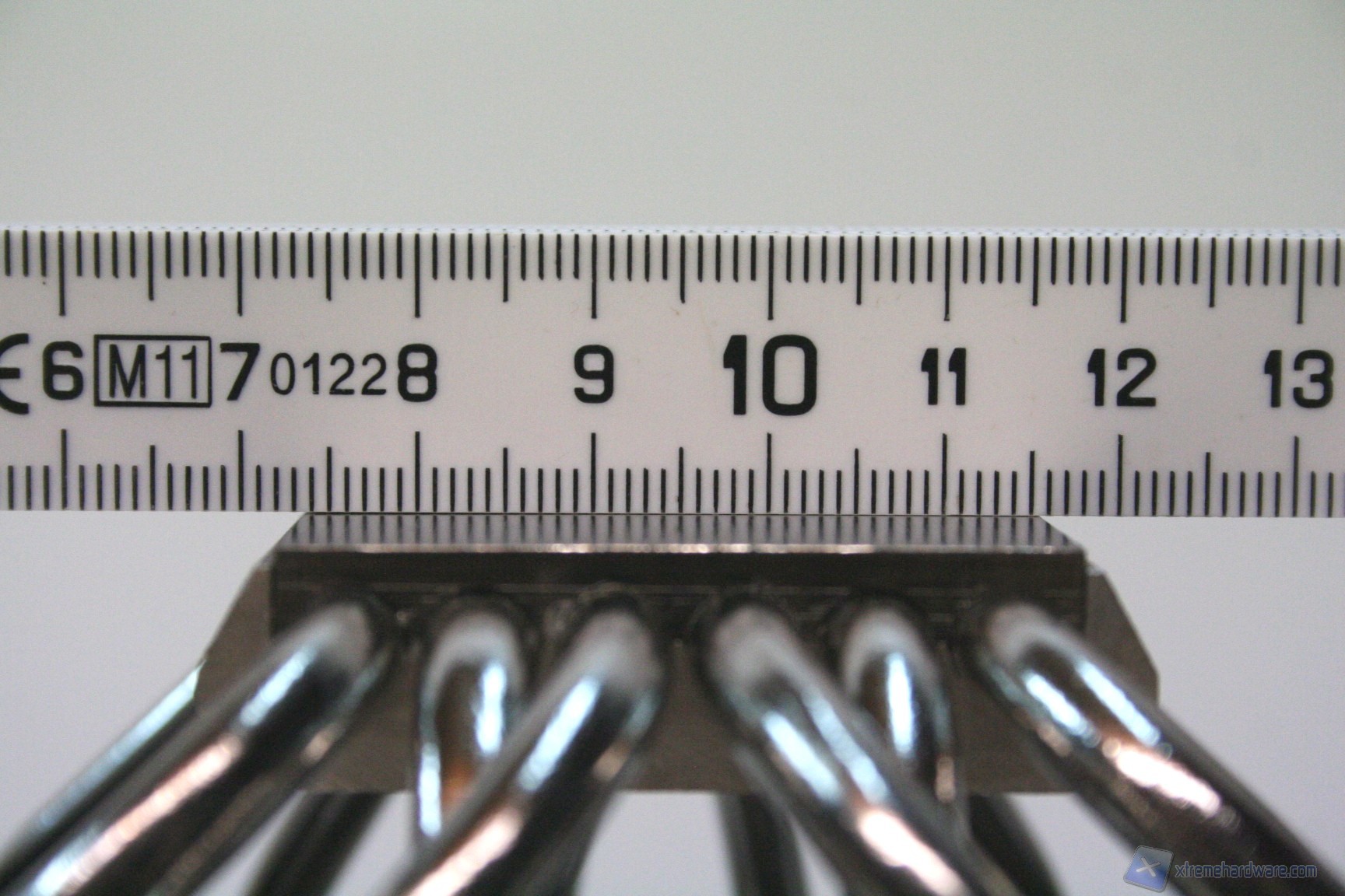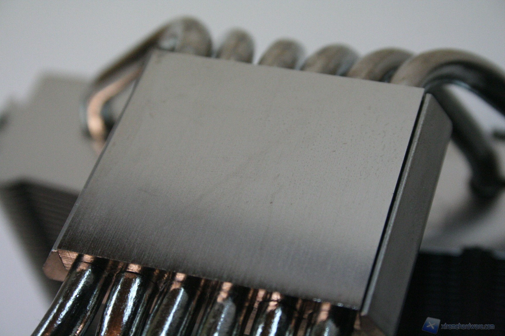 La convessità, leggerissima, è intenzionale poiché ovvia a problematiche potenziali di contatto con l’IHS della CPU spesso ricurvo a causa del sistema di ritenzione della scheda madre. Sul socket LGA 2011, questo problema non è presente e tale accorgimento non è a nostro avviso necessario: anche i dissipatori con superficie perfettamente planare generalmente riescono ad avere un’ottima impronta e quindi buone prestazioni.