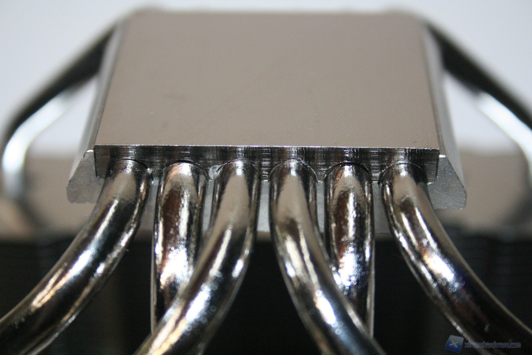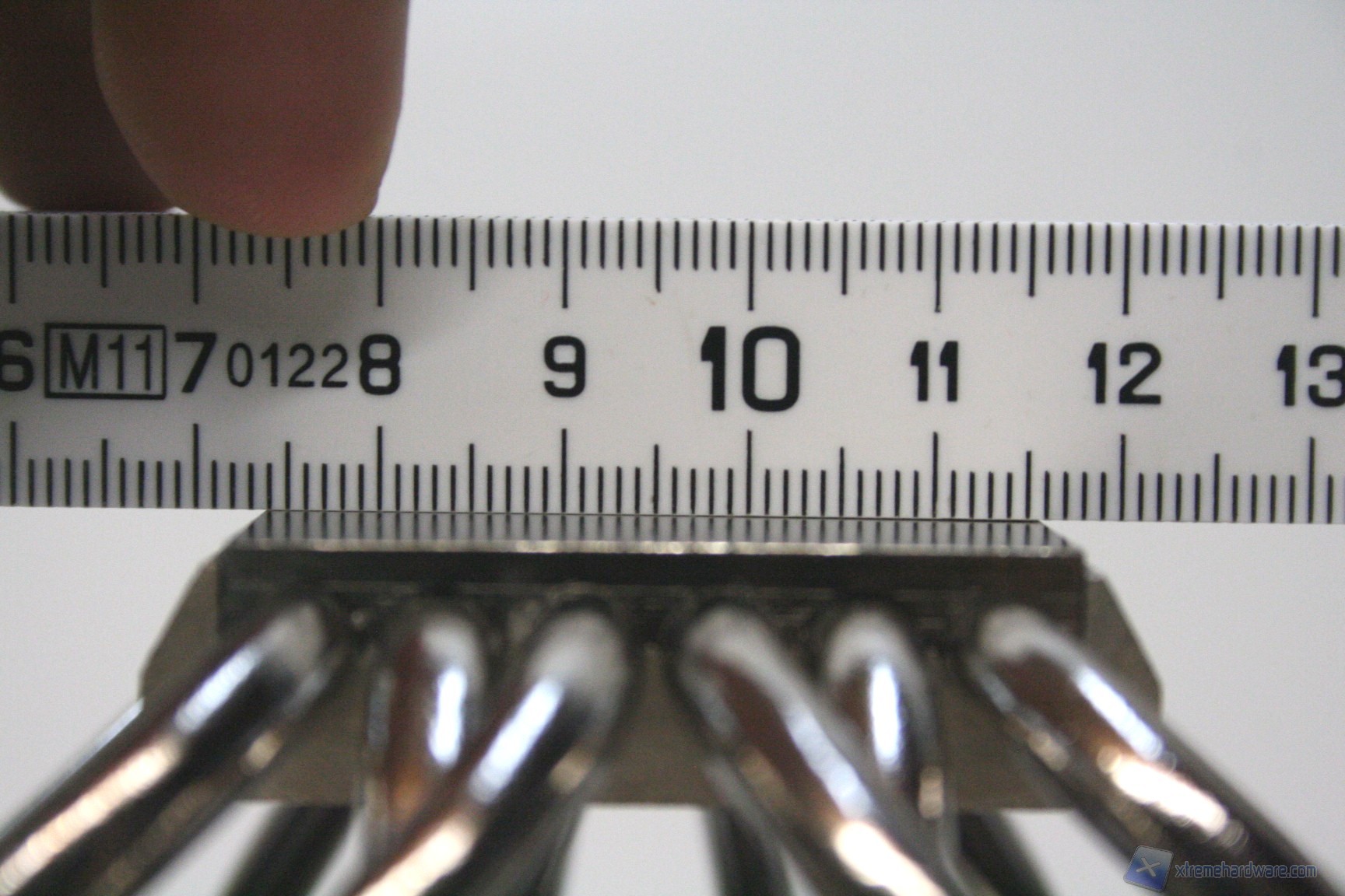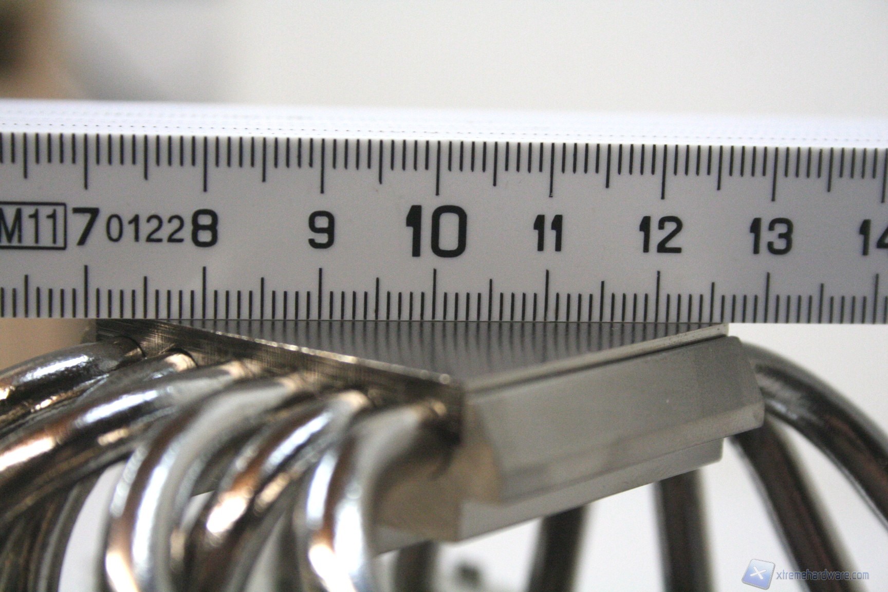 La convessità, leggerissima, è intenzionale poiché ovvia a problematiche potenziali di contatto con l’IHS della CPU spesso ricurvo a causa del sistema di ritenzione della scheda madre. Sul socket LGA 2011, questo problema non è presente e tale accorgimento non è a nostro avviso necessario: anche i dissipatori con superficie perfettamente planare generalmente riescono ad avere un’ottima impronta e quindi buone prestazioni.