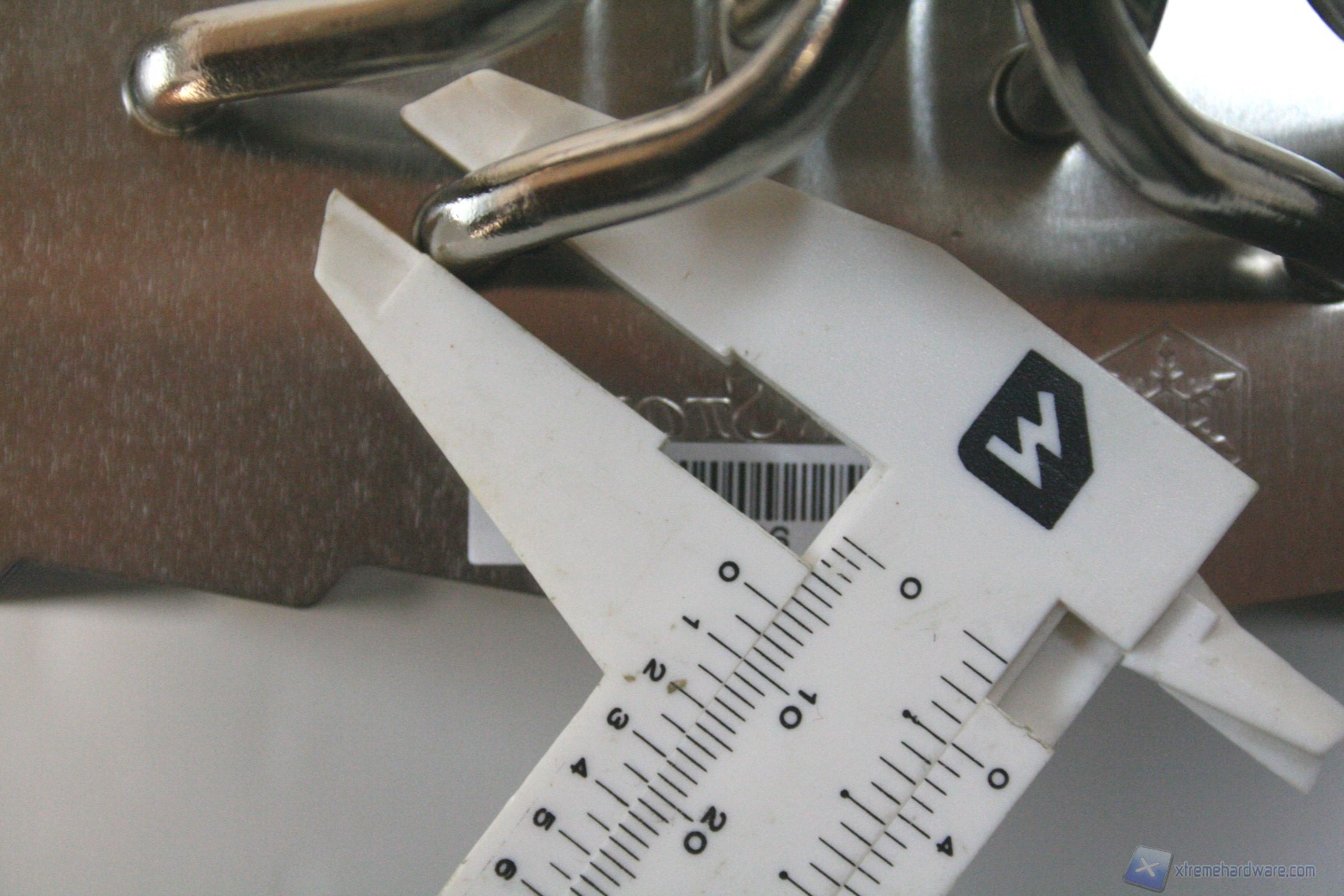 NOTA BASE CONVESSA: la base leggermente convessa è stata un marchio di fabbrica della ditta Thermalright. E’ stata adottata in quanto il socket di ritenzione delle moderne CPU, a partire dalle soluzioni aventi socket 775, era solito presentare una curvatura leggermente concava, il che ovviamente era deleterio per l’efficienza massima di scambio termico. Con il dissipatore Thermalright Ultra-120 è stata introdotta in commercio ed è ormai molto comune l’adozione di questo sistema. Precisiamo però che con il moderno socket Sandy Bridge-E non è più presente nessuna concavità nel sistema di ritenzione, che risulta perfettamente lineare.