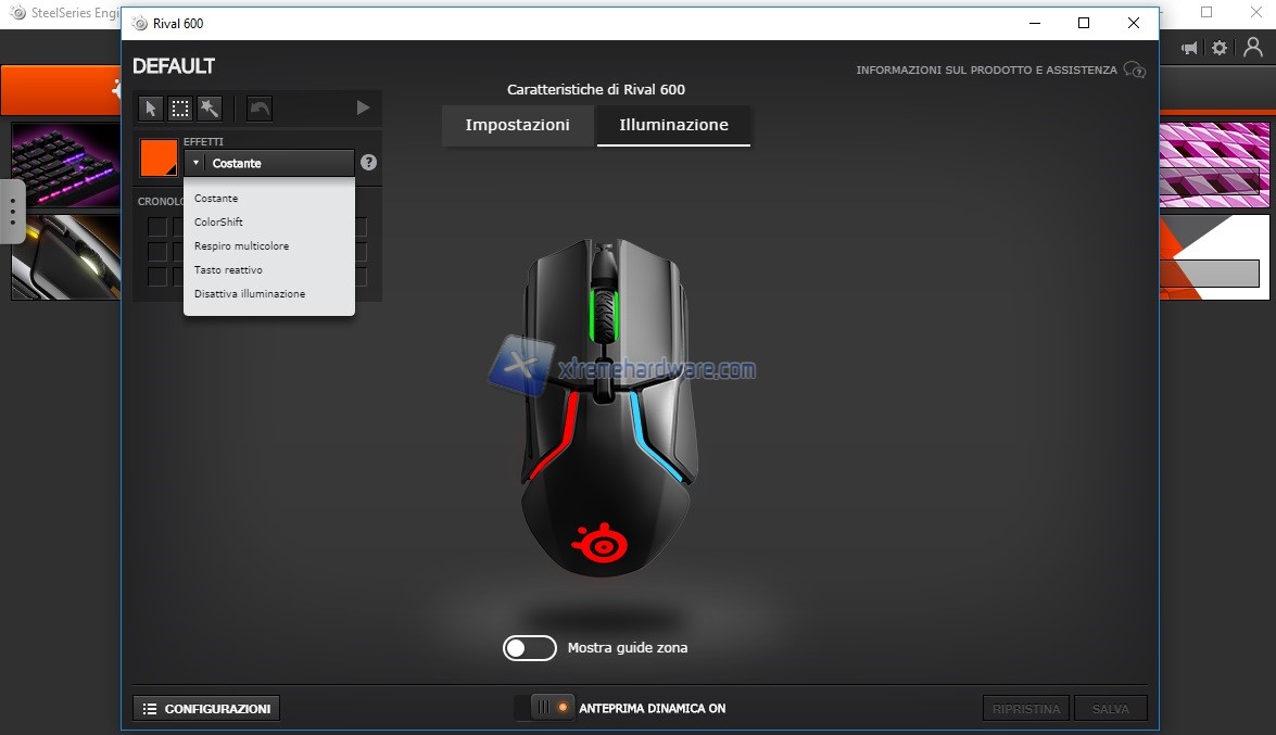 Altra applicazione è sicuramente Prism Sync con cui potremo sincronizzare l’illuminazione e relativi effetti con tutte le periferiche SteelSeries compatibili e dotate di una retroilluminazione RGB.