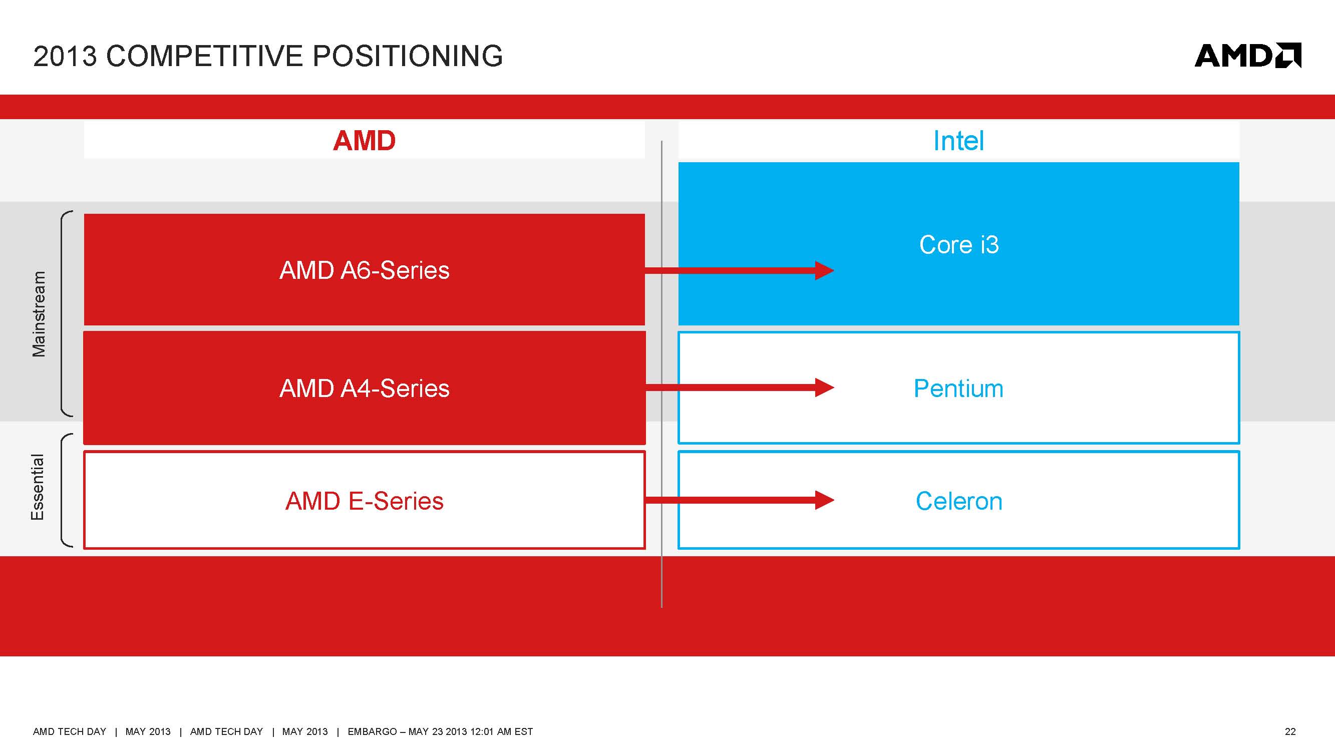 Lo scontro diretto è con la rivale Intel per quanto riguarda i modelli Celeron, Pentium e Core i3 dove le performance sono davvero di tutto rispetto.