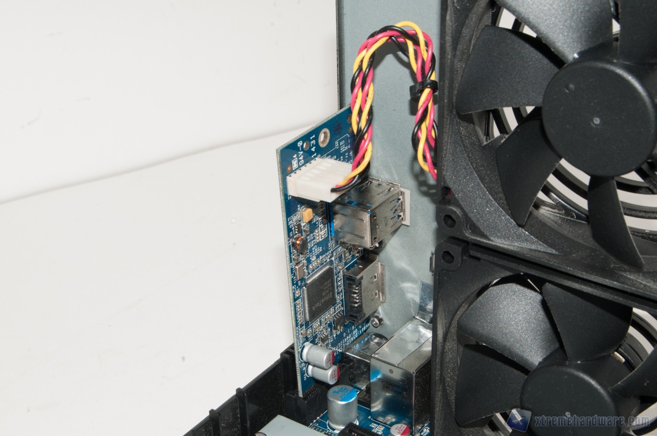 Scolleghiamo dunque i due cavi delle ventole da 92mm dalla schedina verticale e rimuoviamola facendo attenzione.