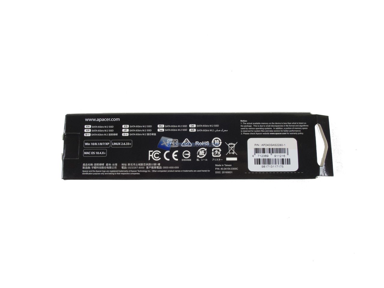 L’Apacer AS2280 ci verrà consegnato in una confezione di cui l’involucro principale in cartone e quello secondario un blister di plastica. Le dimensioni sono naturalmente rapportate al Form Factor M.2 dell’SSD stesso.