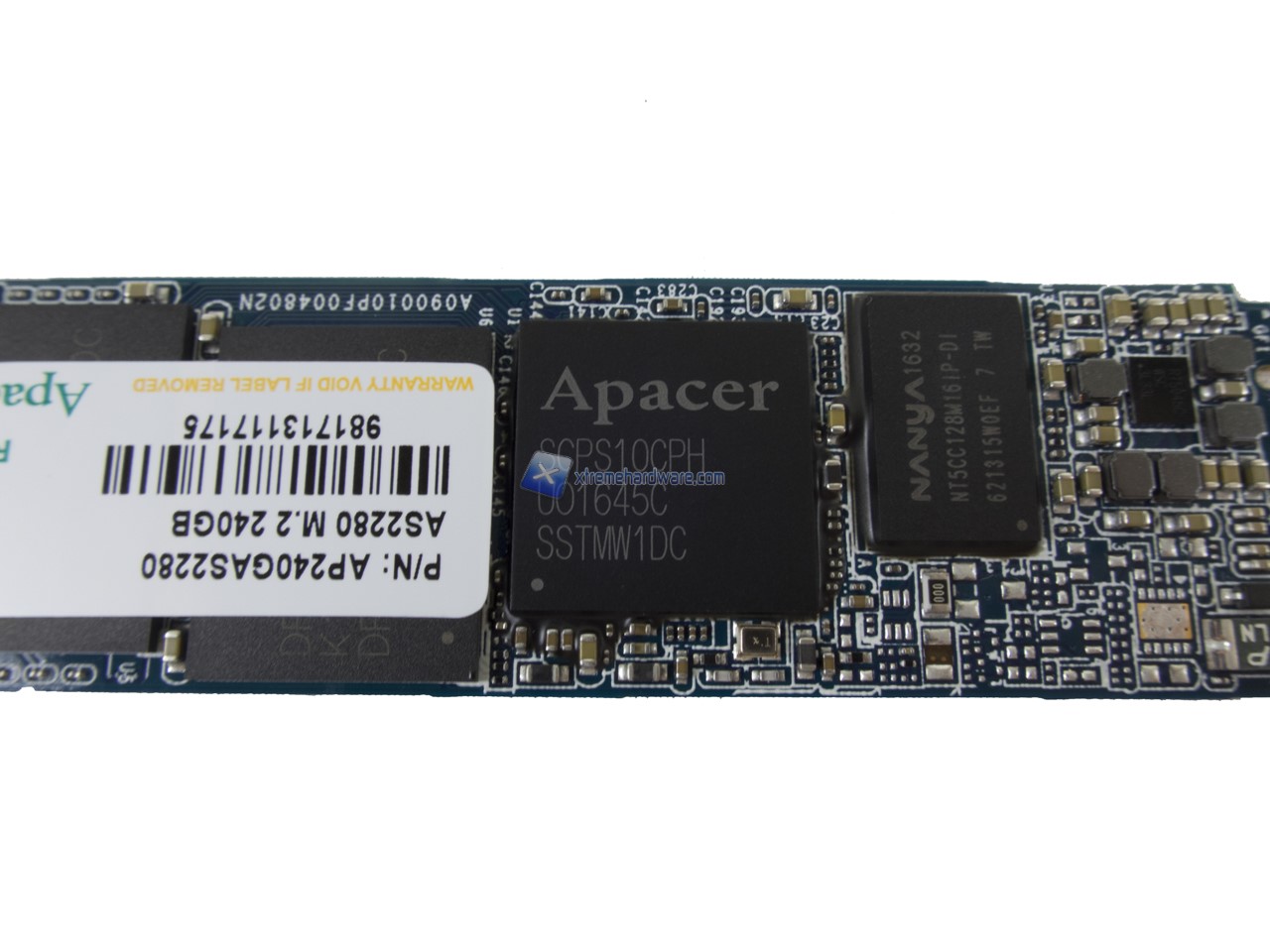 Al centro del PCB invece è presente il controller Quad-Core Phison PS3110-S10 rebrandizzato da Apacer con la sigla SCPS10CPH. Controller con processo produttivo di 55 nm.