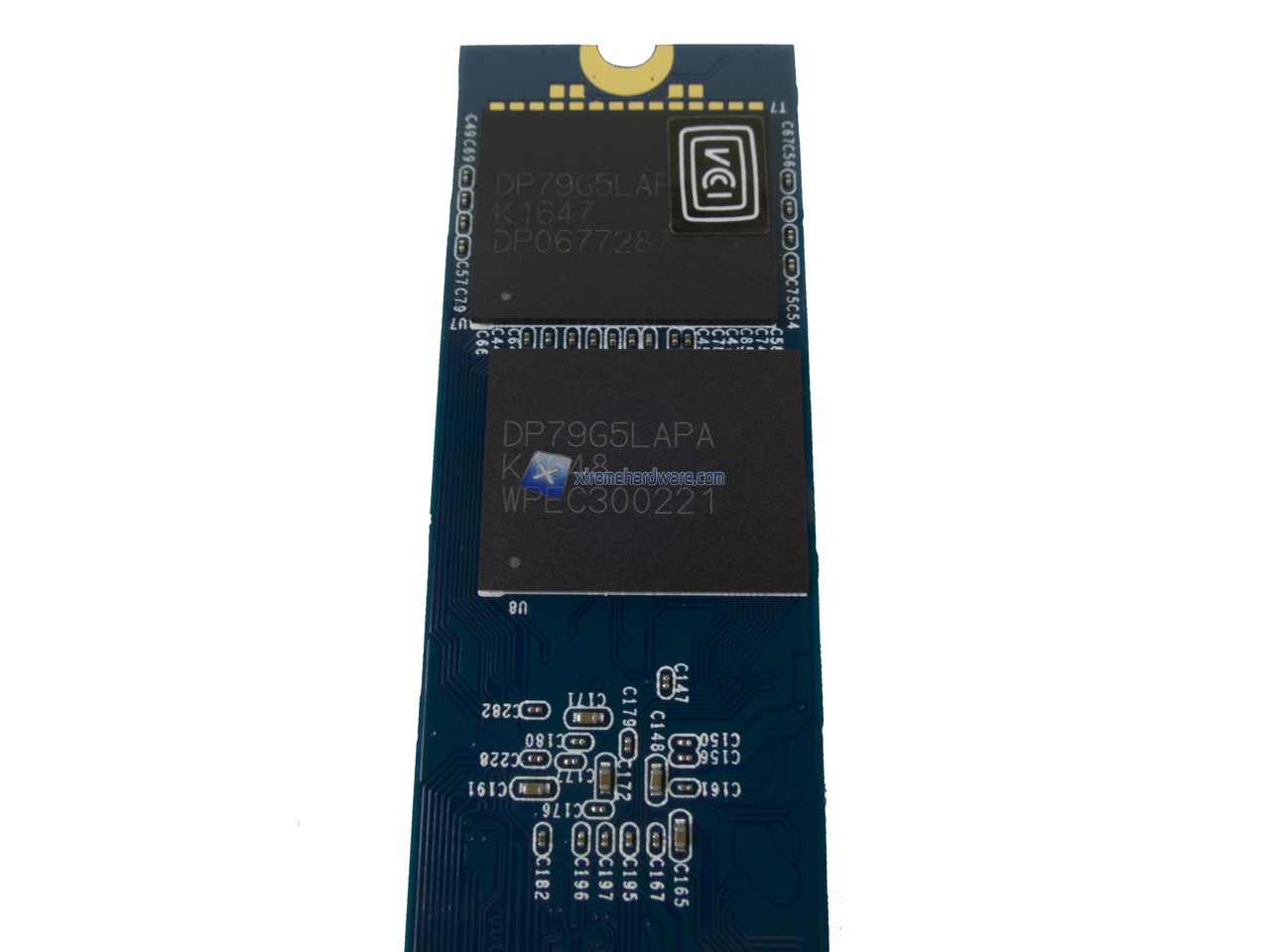 Nel lato sinistro i primi due chip, gli altri due nel retro del PCB, NAND Flash a 19nm di tipo MLC siglate DP79G5LAPA. Non abbiamo ulteriori informazioni in merito.