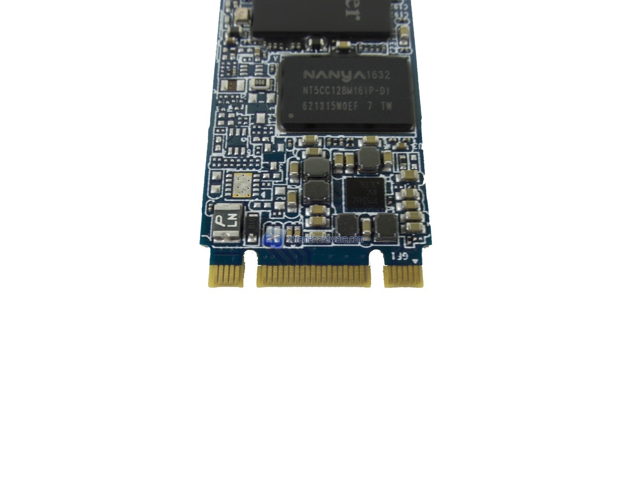 A seguire analizzando i chip presenti sul PCB troviamo vicino al connettore M.2 un chip Nanya NT5CC128M16DP-DI. Tale chip rappresenta un chip DRAM Cache da 2Gb DDR3L.